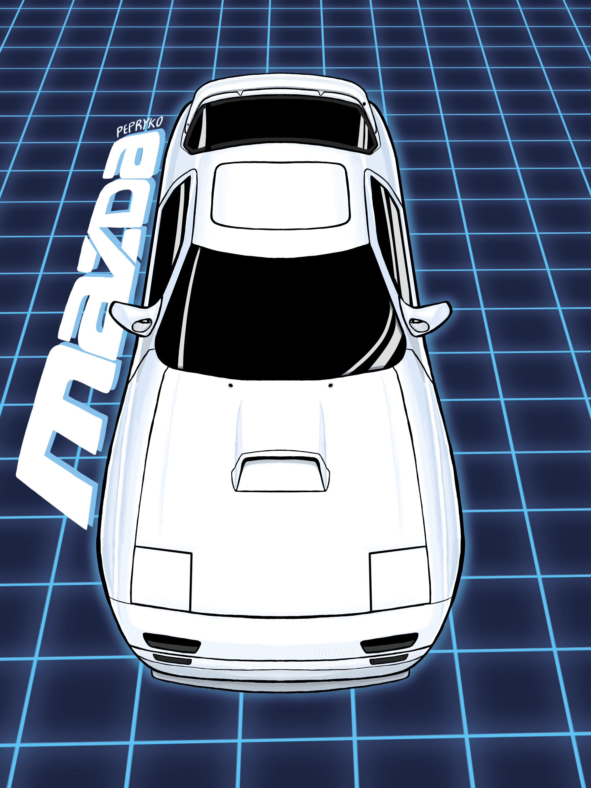 Car illustrations with the goal of rendering and perspective construction.