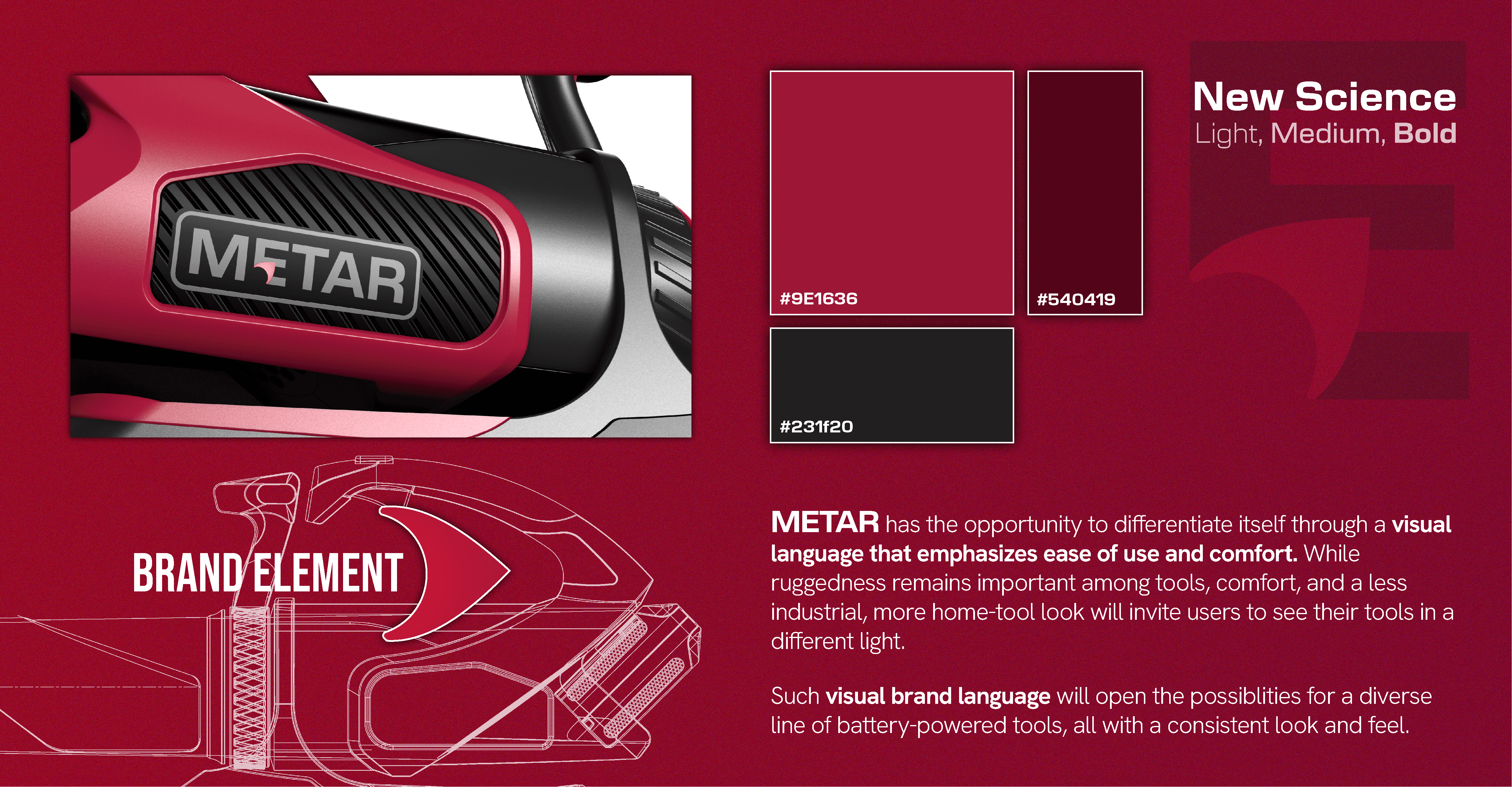 A power tool that targets the pain point while appealing to a target consumer with a corresponding visual brand language.